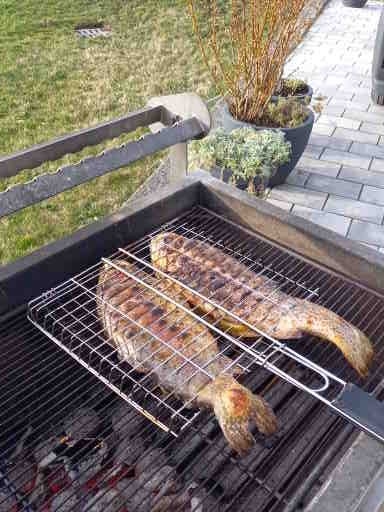 Nach ca. 20 Minuten ist der Fisch dann bereit für den Flossentest. Von einem Bekannten habe ich nämlich den Tipp bekommen einfach an der Rückenflosse zu ziehen. Wenn sie sich leicht heraus ziehen lässt, ist der Fisch fertig.