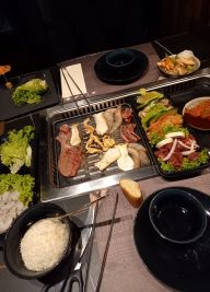 Das Grillen am Esstisch ist in Korea sehr beliebt und bei uns ein echter Essenstrend. Mariniertes oder unmariniertes Fleisch sowie Fisch werden hier direkt am Tisch selbst zubereitet. Dann wickelt man das Grillgut in die zahlreich dazu servierten Salatblätter und taucht diese in eine Auswahl an Saucen die am Buffet zur Verfügung stehen. Hier findet man auch Salate und Brot. Beliebt dazu sind Rettichsalat und natürlich Reis.