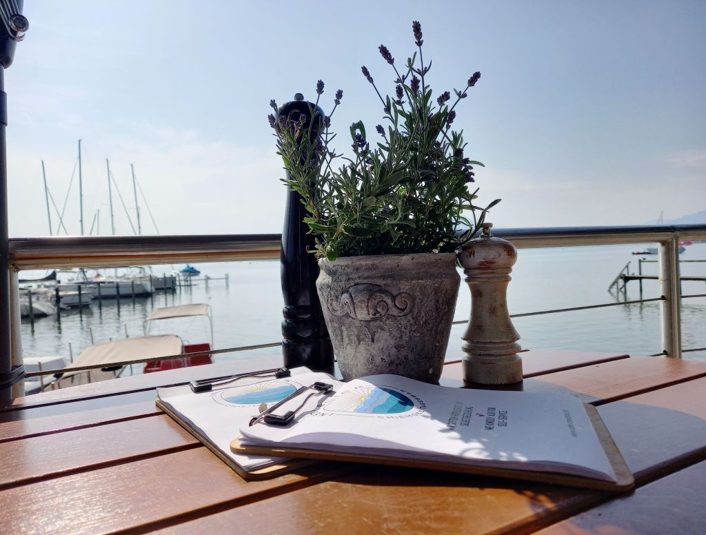 Ein kleines Cafe mit wunderbarer Aussicht auf die Fraueninsel.