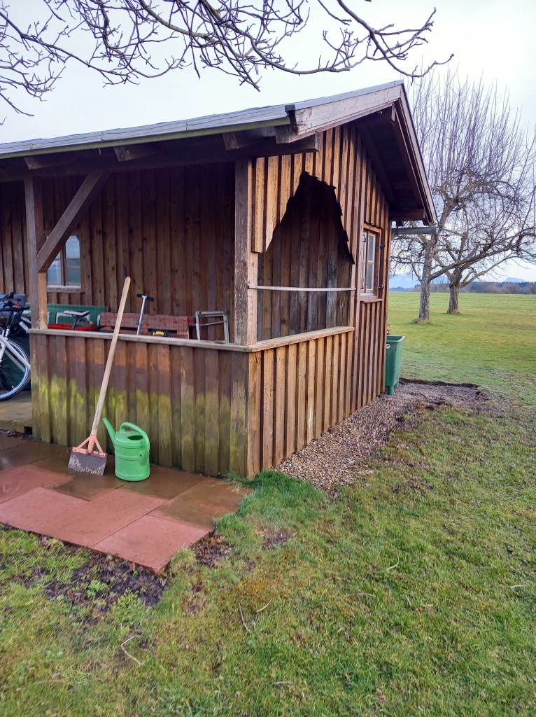 Es war einmal ein altes sehr gebrauchtes Gartenhaus. Es stand im Schatten eines Nussbaumes und wurde nur selten genutzt. Das geringe Interesse seiner Besitzerin hinterließ bereits Spuren als eines Tages …..